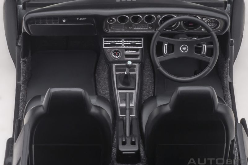 日本初のスペシャリティカーとして1970年に登場した初代『トヨタ セリカ』。その後1973年に追加された『セリカ リフトバック』は、リアシートバックを倒すと大型レジャー用品の積載も可能な大型テールゲートを持ち、当時のレジャーブームを先取りしたGTカーとしてセリカの代名詞といえるほどの人気を獲得しました。オートアートでは、高性能版の『リフトバック 2000GT』をリアルにモデル化。マスタングを彷彿とさせるリアビューとロングノーズで構成されるスポーティなスタイルはもちろん、特徴的なリアコンビネーションランプ、最高出力145psを発揮する専用の2リッター直4DOHCエンジン、5連メーターを配置するインテリアまで正確に再現しました。