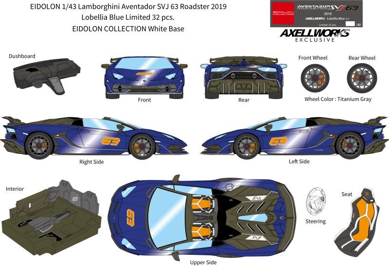 EIDOLON 1/43 Lamborghini Aventador SVJ 63 Roadster 2019 Lobellia Blue Limited 32 pcs. [EM517AX2]