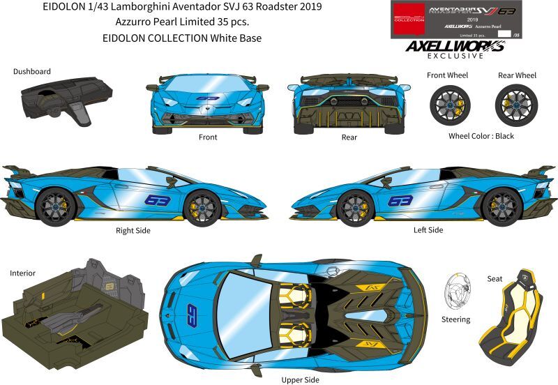 EIDOLON 1/43 Lamborghini Aventador SVJ 63 Roadster 2019 Azzurro Pearl Limited 35 pcs. [EM517AX3]