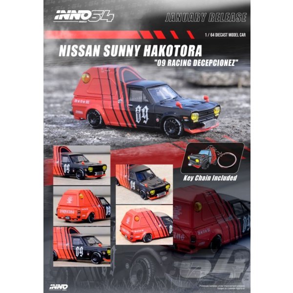 INNO Models 1/64 Nissan Sunny Truck HAKOTORA "09 RACING" DECEPCIONEZ Exclusive Package キーチェーン付