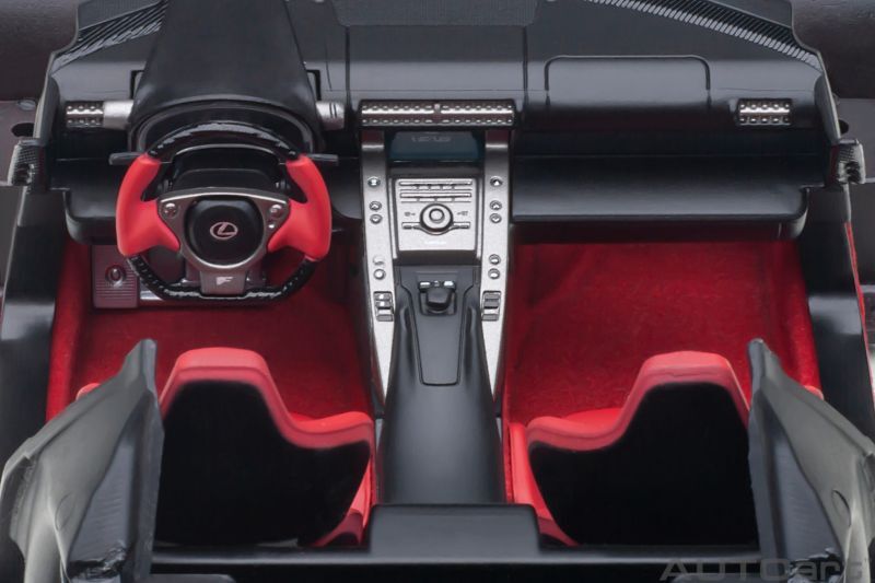 2010年12月から500台が限定生産されたレクサスブランド初のスーパースポーツカー『LFA』。カーボン素材を採用し軽量化と高剛性を確保したボディに、ヤマハと共同開発した最高出力560PSの4.8リッターV10エンジンを搭載します。オートアートでは、アップデートされた最新技術を駆使し、新規金型で約12年ぶりにモデル化。デジタル化による正確なボディ形状はもちろん、エンジンルームやインテリア、専用鍛造ホイール、カーボン製ブレーキなど細部までリアルに再現しました。スイッチにより「アクティブリアウイング」が可動。コンポジットダイキャストモデルの利点を活かした高精度な開閉もお楽しみ頂けます。