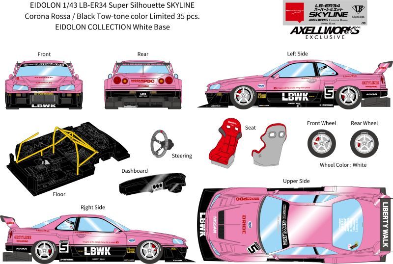 EIDOLON 1/43 LB-ER34 Super Silhouette SKYLINE Corona Rossa / Black Tow-tone color Limited 35 pcs.