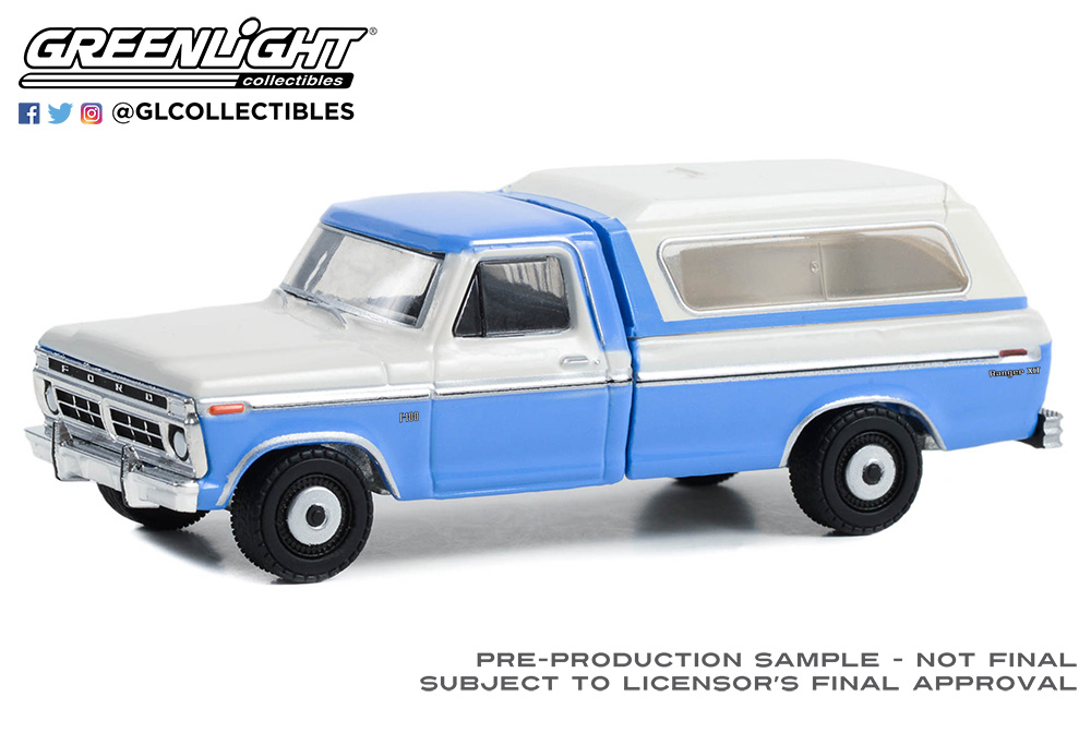 2.1975 Ford F-100 Ranger XLT with Camper Shell - Wind Blue and Wimbledon White