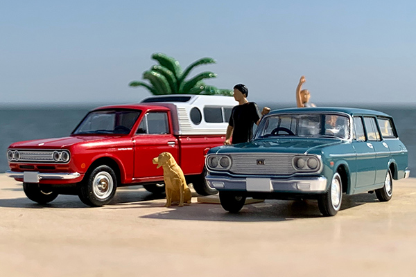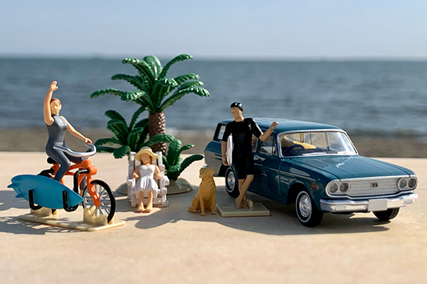 最近、SNSでにわかに盛り上がっている、ミニカーやトイを使った「映え」写真。単に撮影するだけでなく、フィギュアや情景アイテムと組み合わせるなど、いろいろな工夫を楽しむ人たちが増えています。そこでトミーテックが提案するのが、1/64スケールのジオコレ64 #カースナップです。今回は「サーフィン」をテーマとしたフィギュア・小物のセットです。トヨペット マスターラインのミニカーが専用カラーで付属します。