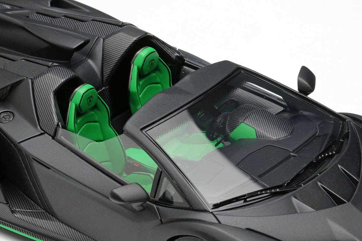 サイドウィンドは一部が切り欠かれたような特殊な形になっています。アヴェンタドールとは異なりハードトップやソフトトップは付属せず、割り切った仕様とされました。