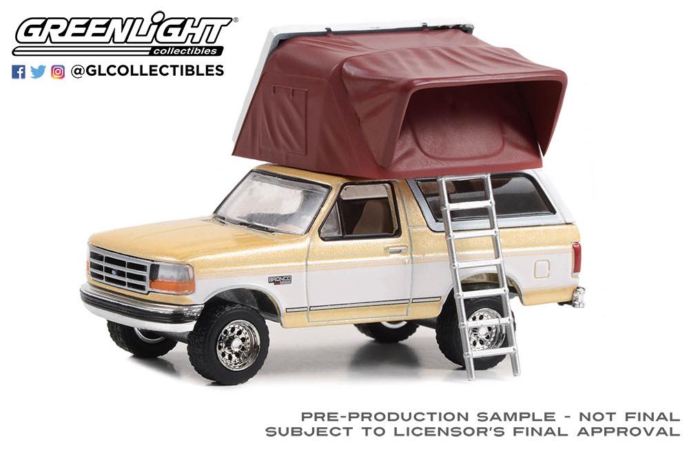 F. 1996 Ford Bronco XLT - Light Saddle and Oxford White with Modern Rooftop Tent
