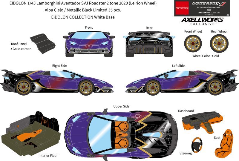 EIDOLON 1/43 Lamborghini Aventador SVJ Roadster 2020 2 tone paint Alba Cielo / Metallic Black Limited 35 pcs. [EM669AX1]