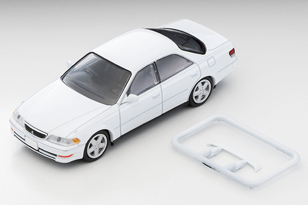 TLV-NEOのX100系としては、まずチェイサーを発売して大変好評をいただきましたが、続いてマークIIを製品化。兄弟車とはいえ完全新金型です。まずは人気のツアラーV後期型から展開いたします。後期型ならではの左右つながったテールランプも特徴です。リアスポイラーはユーザー取付部品ですので、オーナーになった気分で取り付けるかを選択してください。