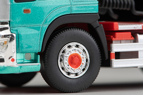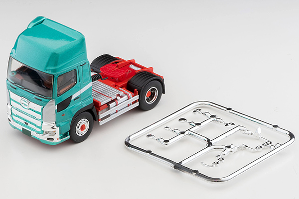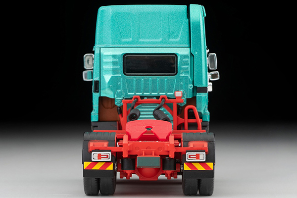 シャーシ周りの補器類、キャブ背面のエアクリーナーと複雑なプレスライン、内装デザイン、ジャンパーケーブル線まで拘って再現しました。今回は赤シャーシに鮮やかな緑が映えるカラーリングが魅力です。2023年9月発売予定の「LV-N292a 日野プロフィア 40ft海上コンテナトレーラ (東邦車輛TC36H1C34) (銀)」のトレーラー側と組み合わせても楽しめます。