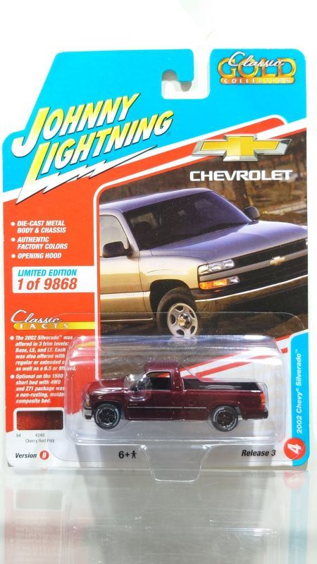 JOHNNY LIGHTNING 1/64 2002 Chevy Silverado Dark Red [JLSP281B] JOHNNY LIGHTNING 1/64 2002 Chevy Silverado Dark Red [JLSP281B] 販売価格: 1,800円(税別) (税込: 1,980円) Tweet 数量: 1 返品特約に関する重要事項 お問い合わせ JOHNNY LIGHTNING 1/64 2002 Chevy Silverado Dark Red