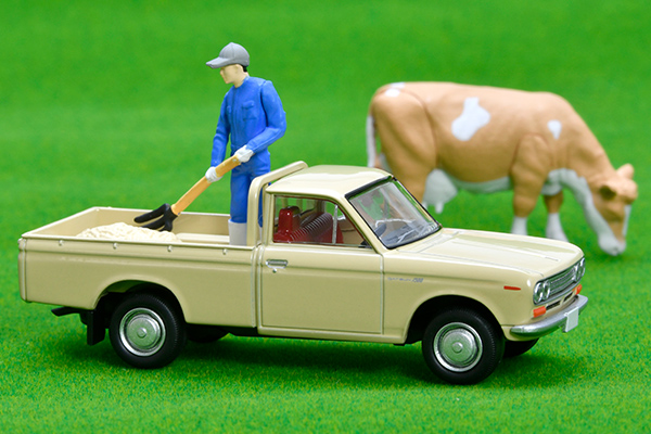 TLVのダットラにフィギュア付きの新仕様が登場。農家の人、牛が付属して牧場の情景がお手軽にお楽しみ頂けます。ボディカラーは実車のラインナップ色から薄茶色をチョイスしました。