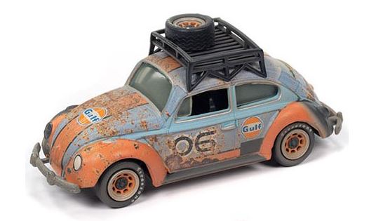 JOHNNY LIGHTNING 1/64 1970 Volkswagen Beetle Gulf Blue/Orange (Weathering Paint) with Roof Rack [JLCP7453]