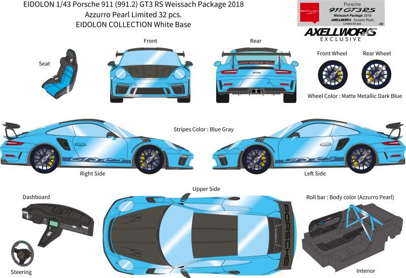 EIDOLON 1/43 Porsche 911 (991.2) GT3 RS Weissach package 2018 Azzurro Pearl Limited 32 pcs. [EM574AX3]