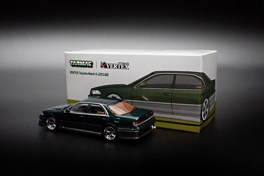Tarmac Works 1/64 VERTEX Toyota Mark II JZX100 Dark Green Metallic [T64G-024-GR]