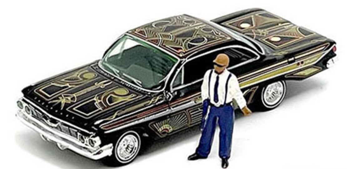 JOHNNY LIGHTNING 1/64 1961 Chevy Impala Lowrider Black with Lowrider Enthusiast Figure
