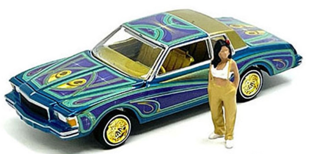 JOHNNY LIGHTNING 1/64 1978 Chevy Monte Carlo Lowrider Blue with Lowrider Enthusiast Figure