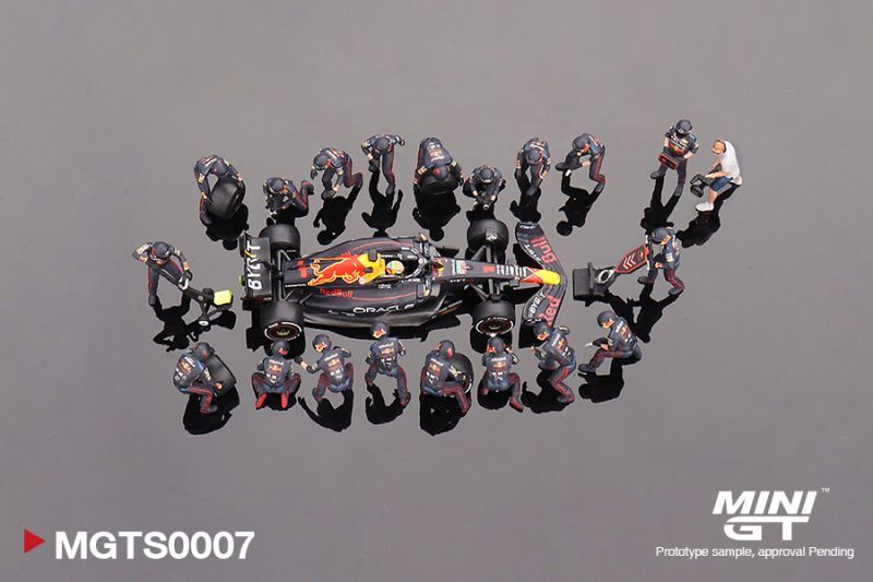 MINI GT 1/64 Oracle Red Bull Racing RB18 2022 Winner Car #1 Abu Dhabi Grand Prix Max Verstappen Pit Crew Set [MGTS0007]