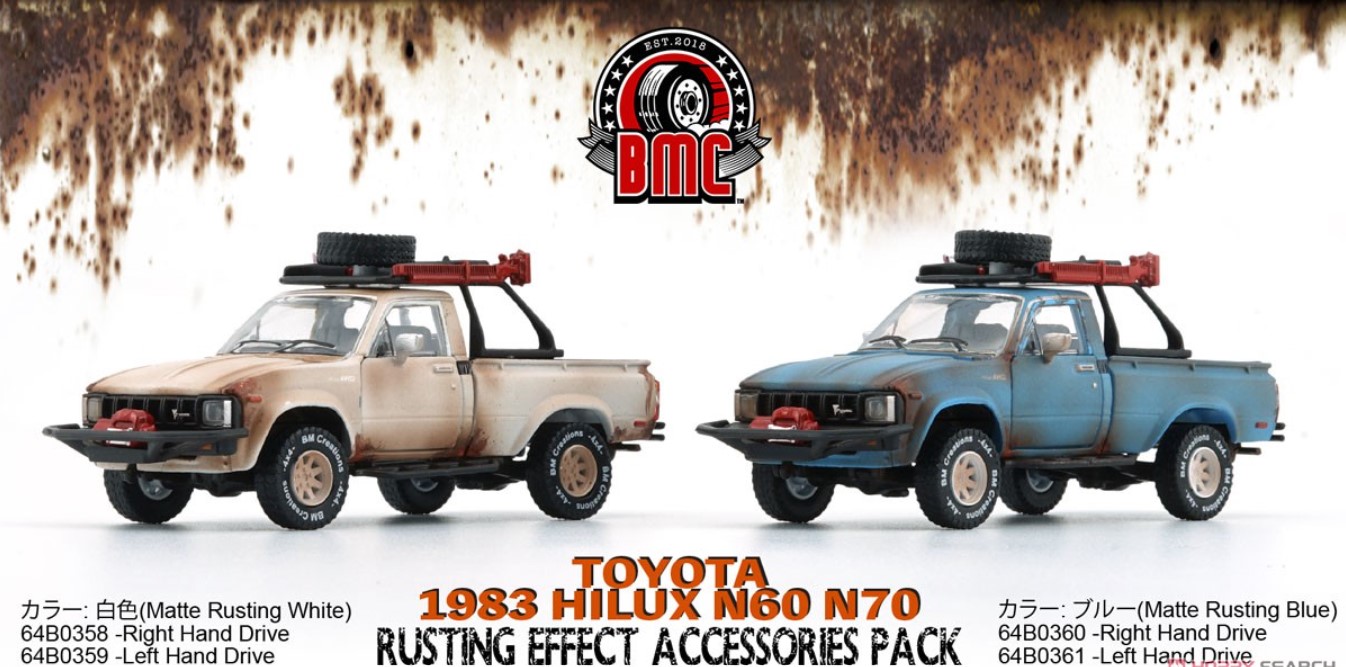 BM Creations 1/64 Toyota Hilux N60, N70 1980 Rust specification Matte Blue with accessories RHD (錆仕様 マットブルー)