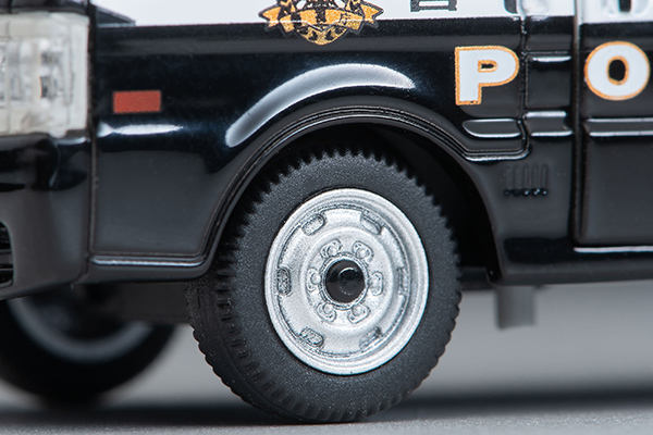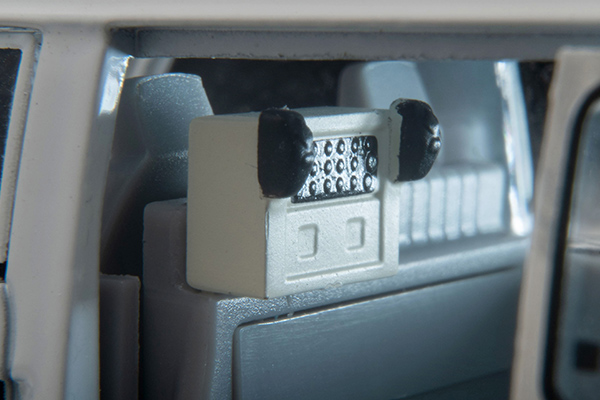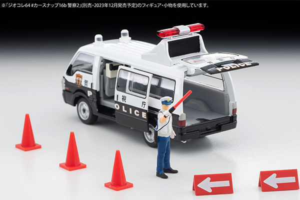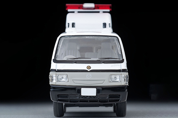 今回は警視庁仕様の誘導標識車を展開。交通事故現場などで活動する誘導標識車は、ルーフの表示器やサーチライトはもちろん、助手席後ろに搭載された操作機器にも注目。マツダの商用車らしい実直さが魅力のボンゴブローニイを机上でもお楽しみください。
