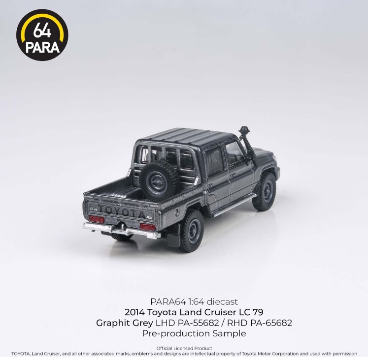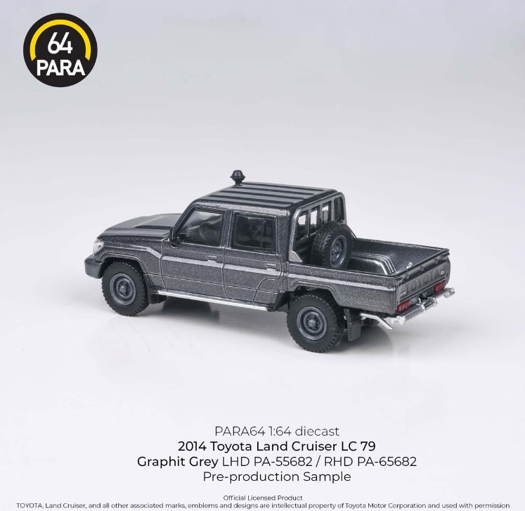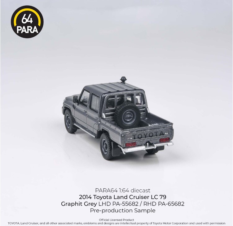 PARAGON 1/64 Toyota Land Cruiser Dbl Cab LC79 2014 Graphite Gray (RHD) [PA-65682] PARAGON 1/64 Toyota Land Cruiser Dbl Cab LC79 2014 Graphite Gray (RHD) [PA-65682] 販売価格: 2,700円(税別) (税込: 2,970円) Tweet 数量: 1 返品特約に関する重要事項 お問い合わせ PARAGON 1/64 Toyota Land Cruiser Dbl Cab LC79 2014 Graphite Gray (RHD) ※右ハンドル仕様 画像と実際の商品は異なる場合がございます。