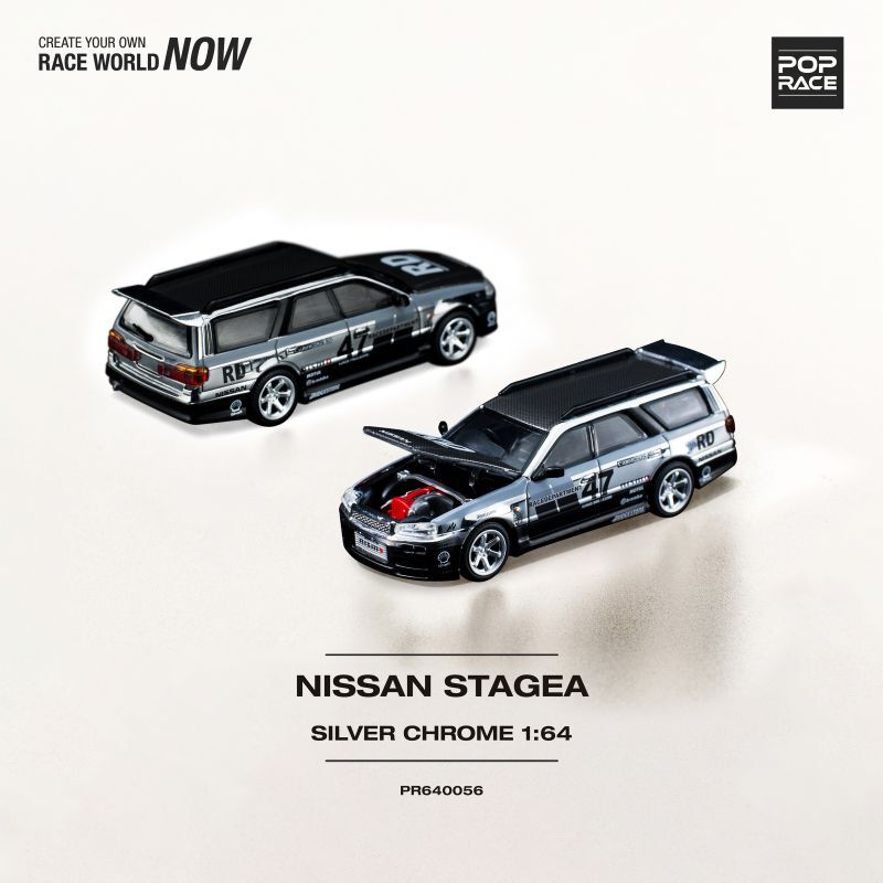 POP RACE 1/64 Nissan Stagea Chrome Silver [PR6400056]