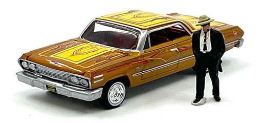 JOHNNY LIGHTNING 1/64 1963 Chevy Impala Lowrider Gold with Lowrider Enthusiast Figure
