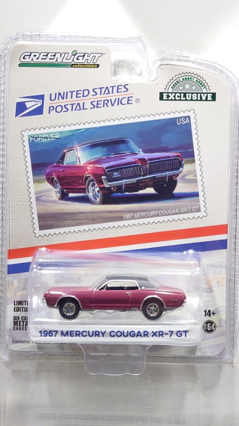 GREEN LiGHT EXCLUSIVE 1/64 1967 Mercury Cougar XR-7 GT (USPS): 2022 Pony Car Stamp Collection by Artist Tom Fritz