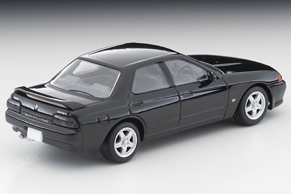 TLV-NEOでは2019年の初登場以来、毎回好評のR32スカイライン4ドアですが、今回は後期型の5ナンバー最高性能車GTS-t Type Mと、最もベーシックなGXi Type Xの2種を製品化。GTS-t Type Mはオプションのリアスポイラー、エアロフォルムバンパーを装備した状態を再現しました。