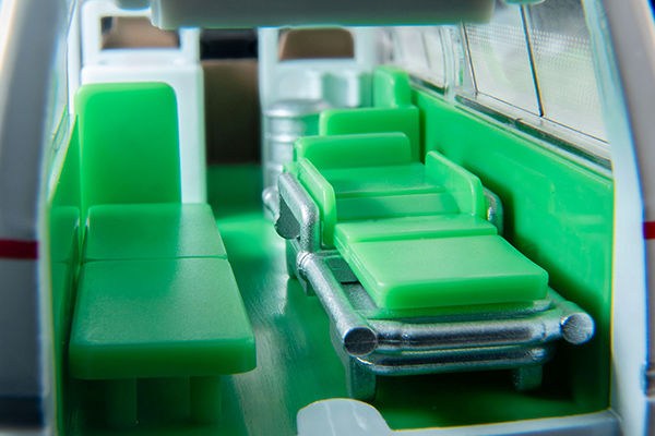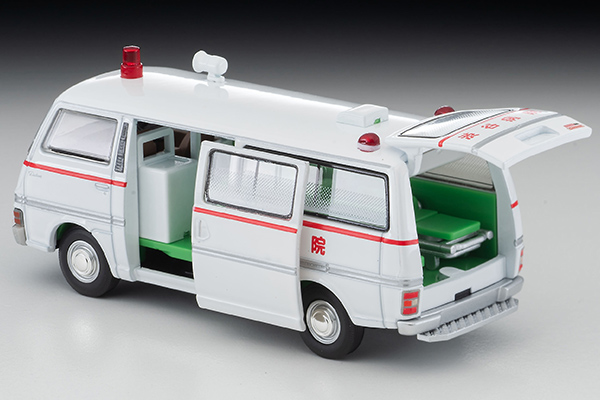 TLV-NEOでは新たに『大都会』シリーズの展開をスタート。今回は、PARTIIIで登場する渋谷病院の救急車を製品化します。番組のオープニング映像では石原裕次郎が演じる外科医・宗方悟郎が毎回乗って登場する車両だけに、番組のファンには深く印象に残っています。車種は実際に救急車としても多く使われていた初代日産 キャラバンで、カラーリングにより劇中の状態に近づけました。スライドドア、リアゲートを開閉可能とし、内装も救急車用内装としていますので、是非ご注目ください。