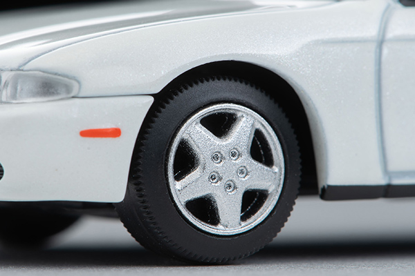 TLV-NEOでは、S14型シルビアの前期型を新金型で製品化。N313aはターボのK'sとし、リアスポイラーが標準装備のタイプSとしました。水平基調のスタイルや大きなヘッドライトはもちろん、K'sとQ'sで異なるホイール形状も再現。今となっては新鮮に映る、ノーマル状態のシルビアの美しさをお楽しみください。