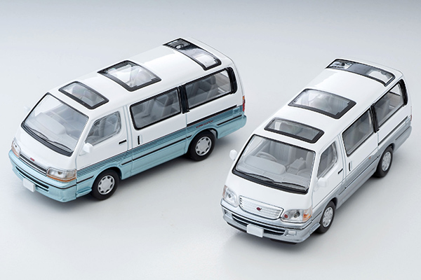 TLV-NEOでも大好評をいただきました100系ハイエースに新仕様を展開いたします。モデルライフ途中の1996年に追加されたスーパーカスタムGはスーパーカスタムのさらに上級モデルで、今回はフロントマスク等が変更された後期型で登場。両車の違いにも注目ください。