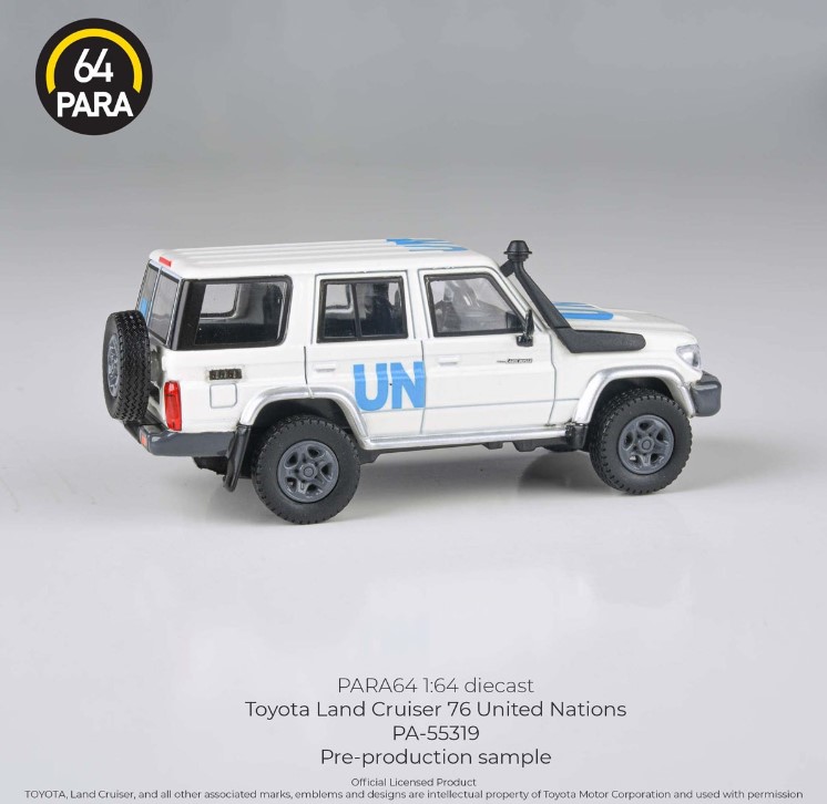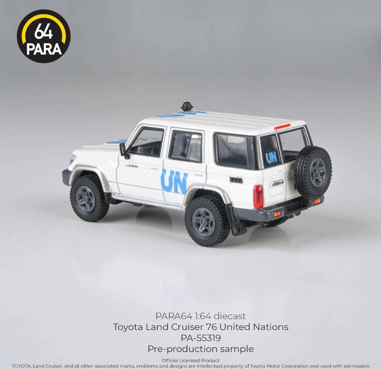 PARAGON 1/64 Toyota Land Cruiser LC76 2014 United Nations LHD [PA-55319] PARAGON 1/64 Toyota Land Cruiser LC76 2014 United Nations LHD [PA-55319] 販売価格: 2,900円(税別) (税込: 3,190円) Tweet 数量: 1 返品特約に関する重要事項 お問い合わせ PARAGON 1/64 Toyota Land Cruiser LC76 2014 United Nations LHD