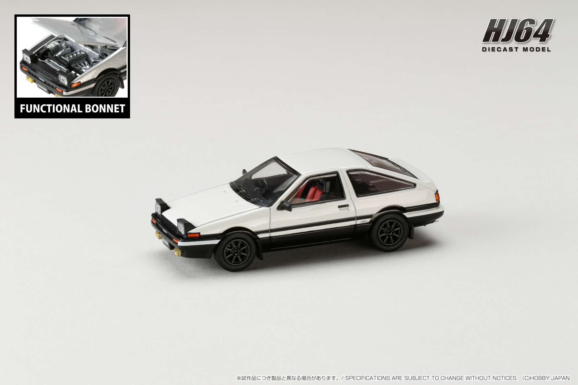 ホビージャパンの1/64ダイキャストシリーズ"HJ64"から トヨタ スプリンター トレノ GT APEX (AE86) JDM Style の登場です。