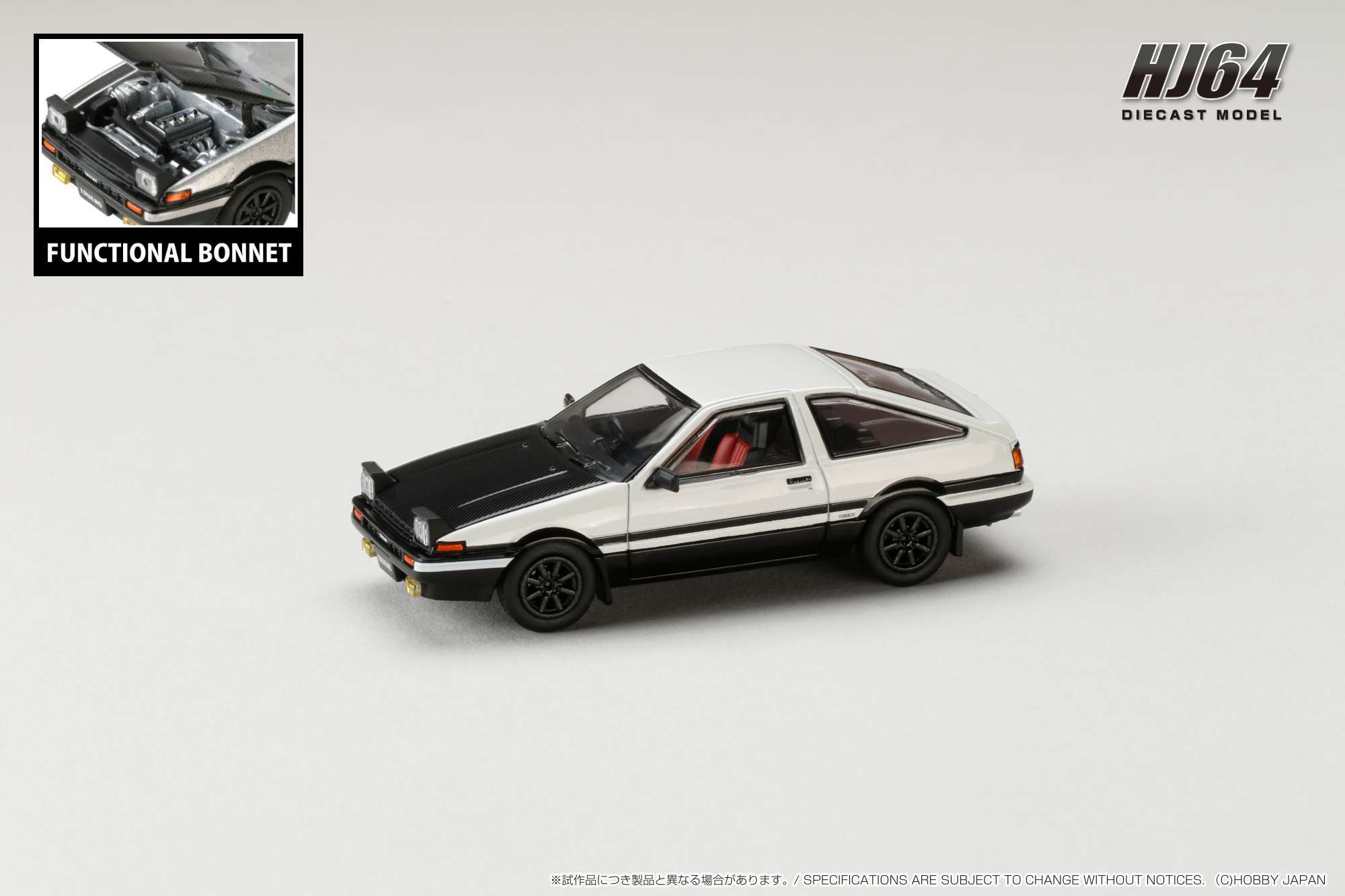 Hobby JAPAN 1/64 Toyota Sprinter Trueno GT APEX (AE86) JDM Style Carbon Bonnet White/Black