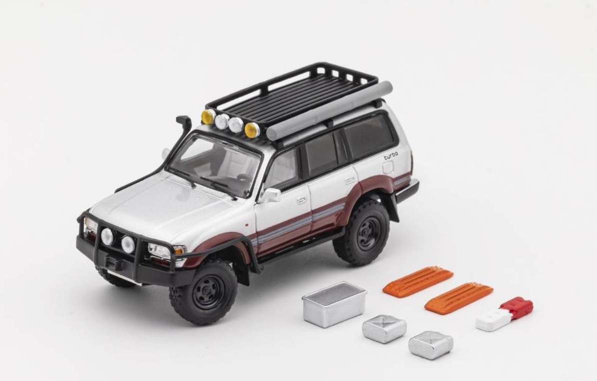 Gaincorp Products 1/64 Toyota Land Cruiser LC80 - Retrofit Version - LHD Silver/Maroon Red