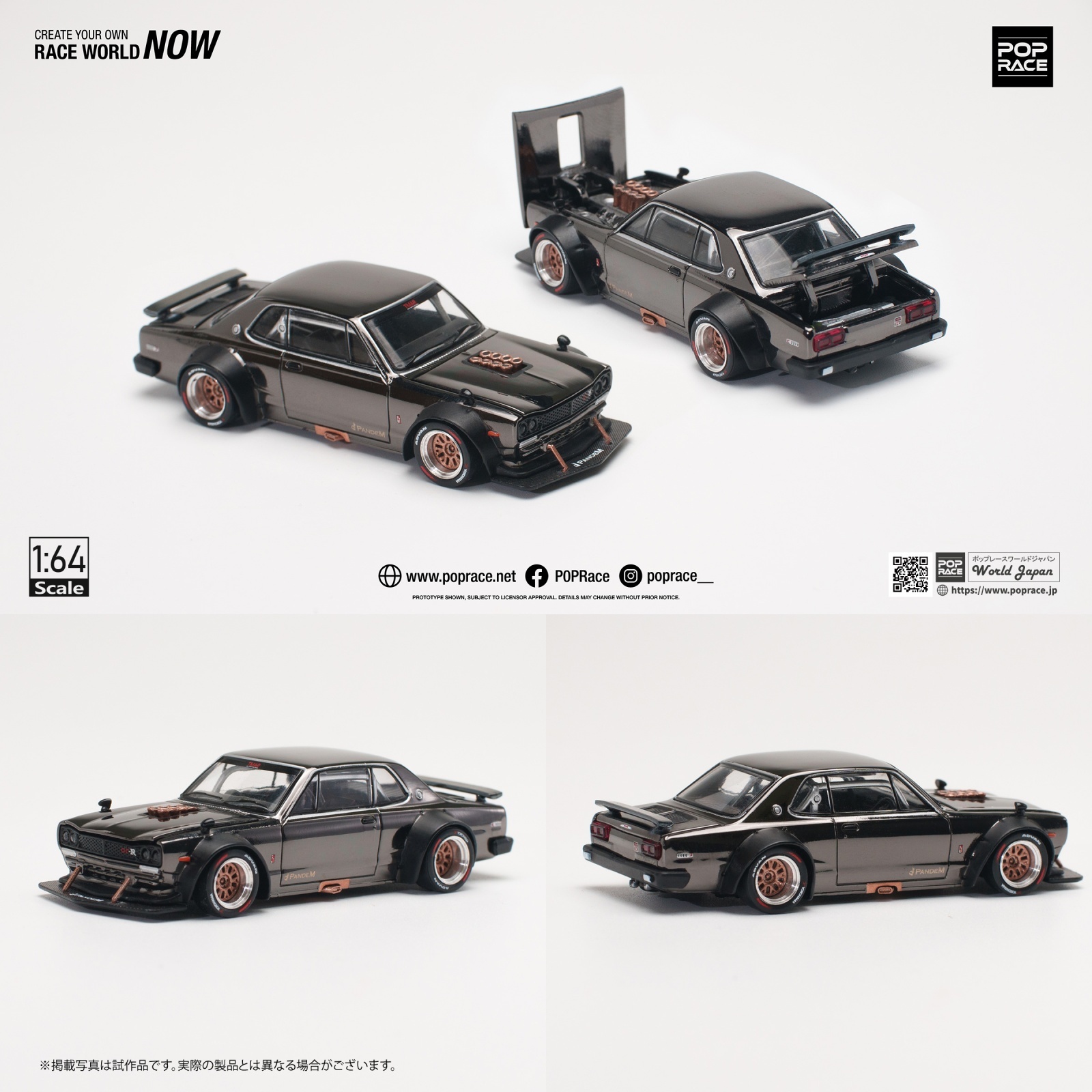 POP RACE 1/64 SKYLINE GT-R V8 DRIFT (HAKOSUKA) DARK CHROME [PR640097]