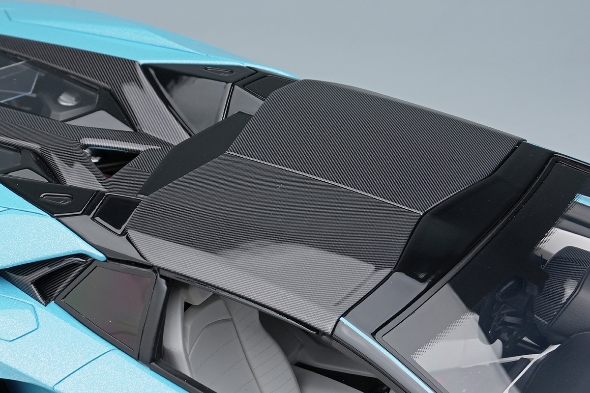 エンジンフードはミウラロードスターのようにエンジン剥き出し、とはいきませんが、そのアピアランスを模した塗分けが施されます。