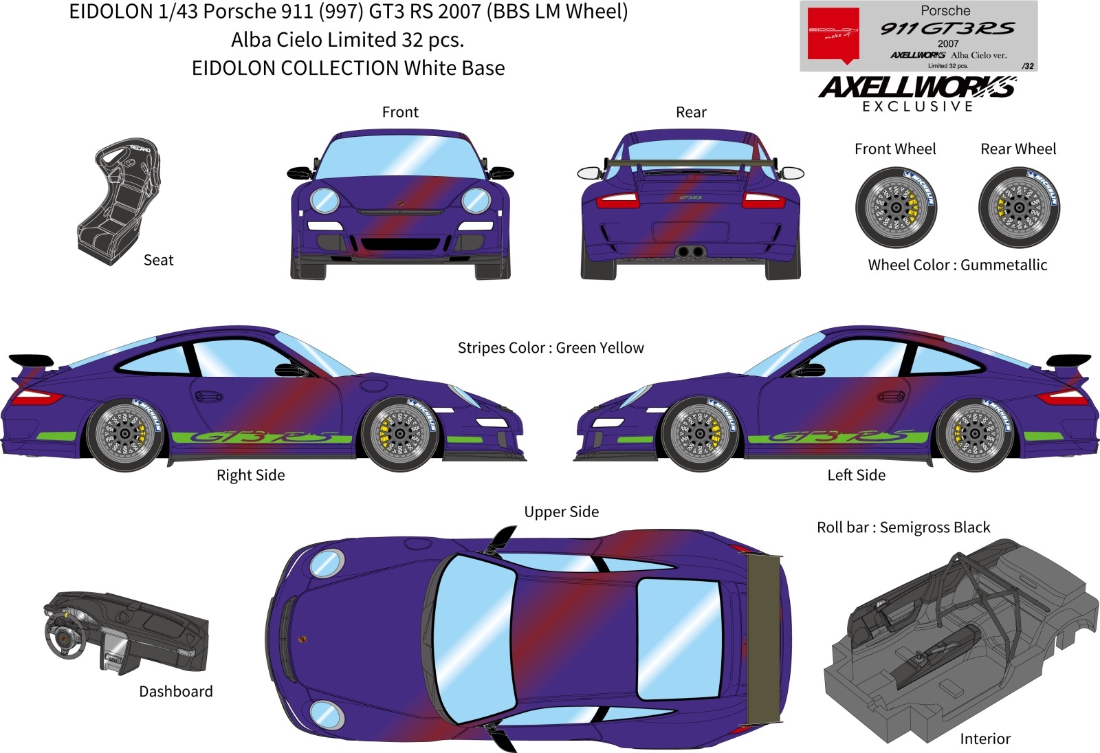 EIDOLON 1/43 Porsche 911 (997) GT3 RS 2007 (BBS LM Wheel) Alba Cielo Limited 32 pcs.