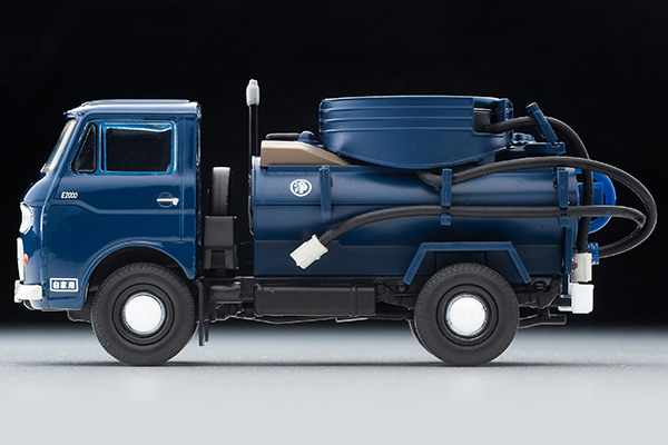 TLVでは以前よりマツダE2000を製品化していますが、60周年となる今年、ひさびさに新仕様が登場いたします。バキュームカーはリアルな雰囲気漂う紺色のボディで、細かな表記類にもこだわりました。昭和の商用車ファン必携のアイテムです。