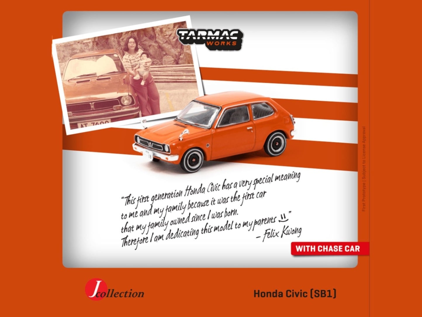 新シリーズJコレクションから初代「Honda Civic (SB1) 」が登場。モデルは1/64スケールダイキャスト素材で再現。前後バンパー、フェンダーミラーは別パーツとし、ノーマルタイヤを装着。マーク類はタンポ印刷とデカールで再現しました。パッケージは紙箱タイプです。