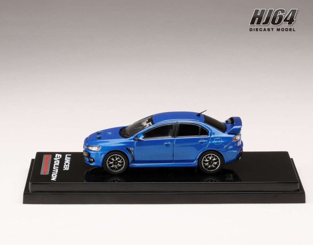 Hobby JAPAN 1/64 Mitsubishi Lancer Evolution X FINAL EDITION Lightning Blue Mica with Engine Display Model [HJ642053ABL]