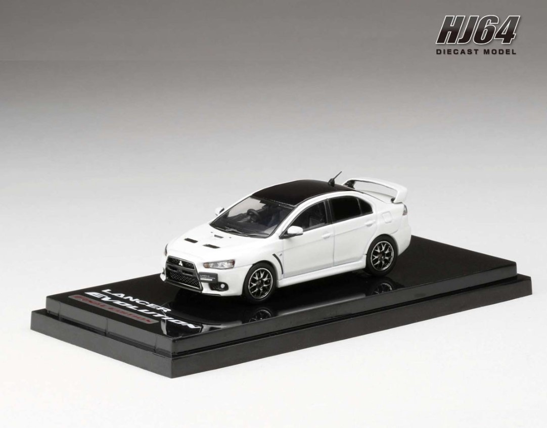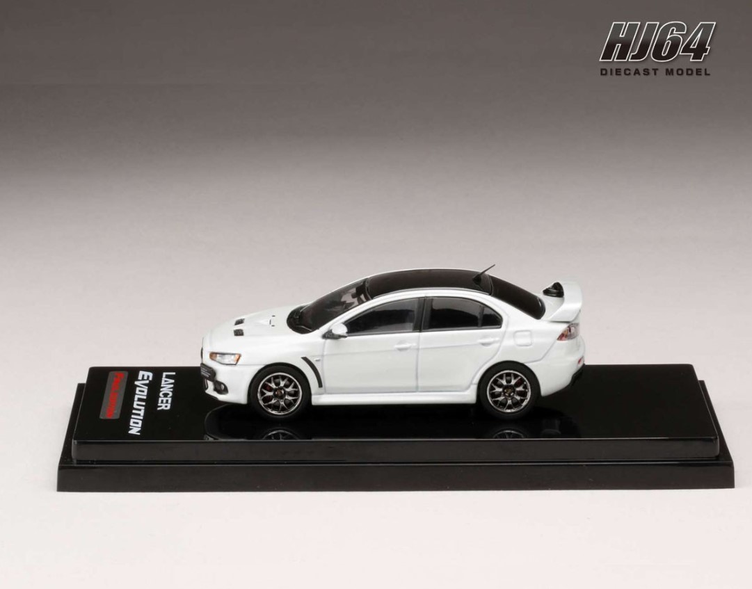 Hobby JAPAN 1/64 Mitsubishi Lancer Evolution X FINAL EDITION White Pearl / Black Roof with Engine Display Model [HJ642053CWP]