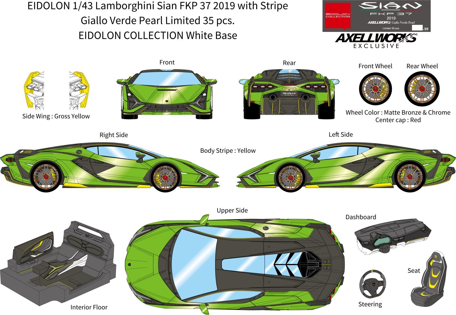 EIDOLON 1/43 Lamborghini Sian FKP 37 2019 with Stripe Giallo Verde Pearl Limited 35 pcs. [EM675AX1]