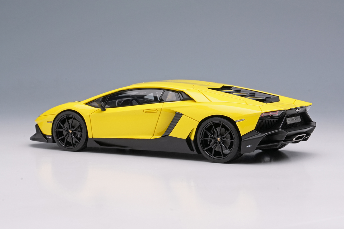 エクステリアではフロントとリア廻りのデザインを一新。フロントはエアインテークとスプリッタ―が大型化され、ノーズ両サイドに小さなフラップが追加されました。リア廻りでは、エンジンルームの熱排出口が拡大され、アヴェンタドールLP700-4では左右二分割だったものが中央部も熱排出口となりました。また大型化されたディフューザーが組み合わされ、更にアグレッシブな外観となりました。