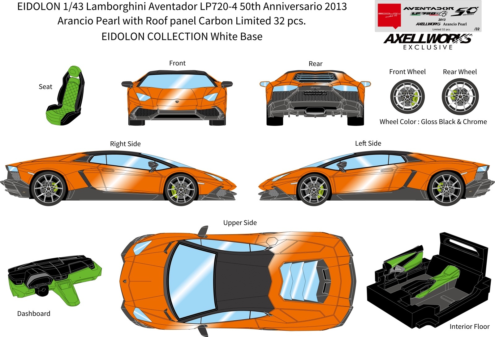 EIDOLON 1/43 Lamborghini Aventador LP720-4 50th Anniversario 2013 Arancio Pearl with Roof panel Carbon Limited 32 pcs.