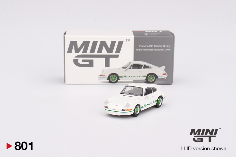 MINI GT 1/64 Porsche 911 Carrera RS 2.7 Grand Prix White/Green Livery (RHD) [MGT00801-R]
