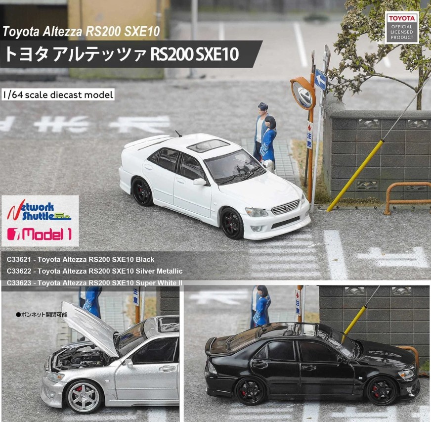 Focal Horizon と Model 1のコラボレーションで、1998年から2005年に販売されたFR駆動のミドルスポーツセダン「トヨタ アルテッツァ」が1/64スケールで登場。開閉可能なボンネットからエンジンの精巧なディテールを楽しめ、実車の外観と内装も忠実に再現。エッチングネームプレート付きのPVC製台座とクリアケースが付属しています。