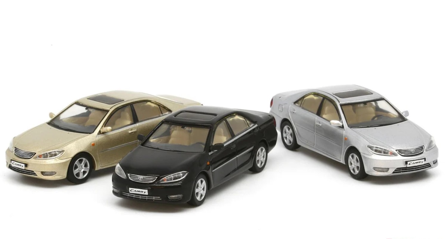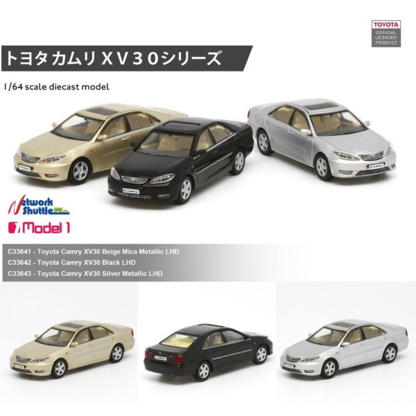 Model 1「1/64 トヨタ カムリ XV30」シリーズが新登場。第1弾はベージュミカメタリック、ブラック、シルバーメタリックの3色展開。