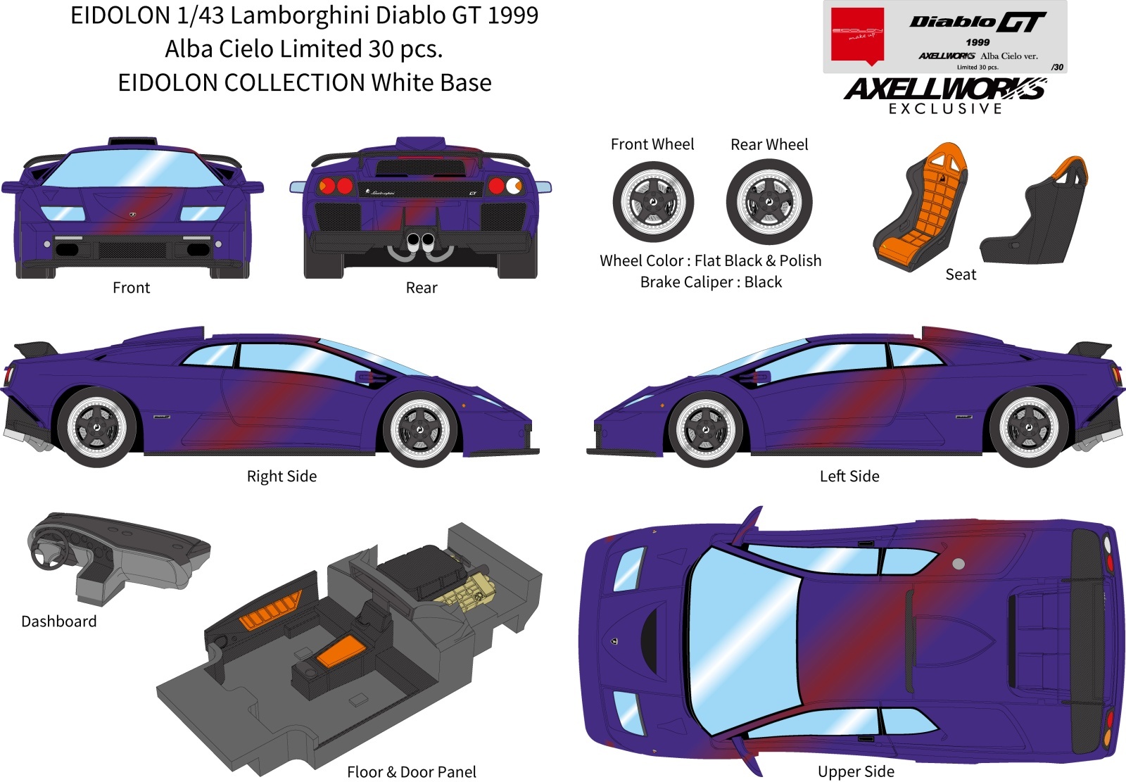 EIDOLON 1/43 Lamborghini Diablo GT 1999 Alba Cielo Limited 30 pcs. [EM782AX1]