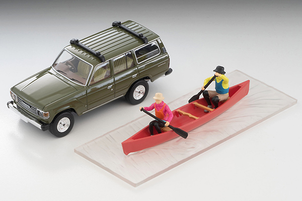 TOMYTEC 1/64 Limited Vintage NEO Toyota Land Cruiser 60 (Olive) with Canoe, Figure